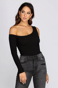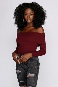 You've got that simple style going on, and this off the shoulder bodysuit will not disapoint! It features a foldover detail, long fitted sleeves, and a thong bottom with dual snap button closures. Bodysuit is composed of a ribbed knit fabric that offers plenty of stretch and a form hugging fit.