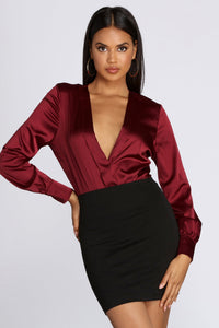 Satin Chic Wrap Front Bodysuit