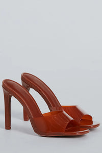 Stay cute by slipping into these patent stiletto mules! They feature a square toe, a clear PVC strap, and a stiletto heel. Complete the look with a trendy mini purse for lunch with the girls or a date!