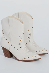 Giddy up and show off those country vibes in these trendy faux leather western booties! They feature an above-the-ankle height, a pointed toe, a stacked block heel, and western-style stitching with sleek studded accents. Pair these boots with a casual short dress and a denim jacket for bar-hopping with the squad!