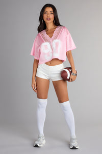 • Game Day Spirit Cheerleader Collared Tie-Front Crop Top
