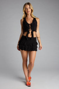 Make a sensational impression in this ruffled mini skort on vacay or brunch! Pair with the matching top to complete the cute look.