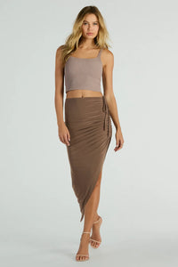 This airy woven midi skirt will bring the sunny vibes to your weekend plans! Designed with a lightweight woven fabric with a mini-length lining, it features a high waist with the cutest tie detail, a high-cut side slit to showcase some leg, and a flowy slim-fit silhouette. Style with the matching crop top for a fabulous 'fit!
