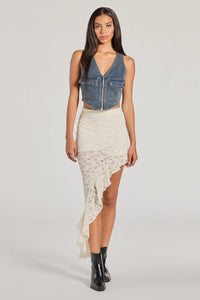 Boho Style Sheer Lace Asymmetric Midi Skirt