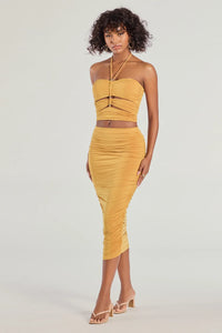 Coastal Escape High Rise Ruched Midi Skirt