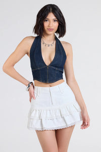 Love At First Sight Mid-Rise Ruffle Denim Mini Skort