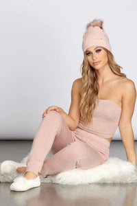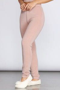 Glimmer and shimmer as you have a girl's night in! These glitter knit PJ joggers feature a high rise elastic banded waist paired with tapered pant legs. The knit fabric offers moderate stretch and includes a fuzzy knit lining.