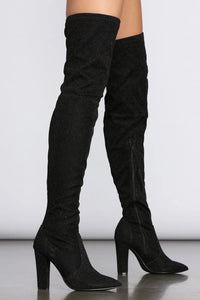Your style is no joke boo. Get a lil extra with these sparkling glitter knit thigh high boots!