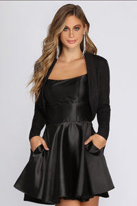 She's all glitz, she's all glam. The Shine All Night Glitter skater dress will make you the center of the spotlight.