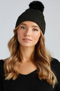 Shimmer Lurex Faux Fur Pom Beanie
