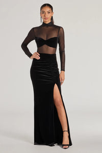 Seraphina Velvet And Mesh Long Sleeve Mermaid Dress