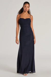 The Samira mesh formal dress attracts all the attention at events or celebrations! The floor-length dress boasts a flattering sweetheart neckline, side ruched seams to accentuate your curves, and a high-side slit to show off your heels.