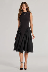 Chic Trendsetter Knit Chiffon Drop Waist Midi Dress