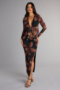 Giving off total romantic vibes, this floral maxi skirt is flirty without trying too hard. With a high-rise waist, curve-hugging fit, and a high side slit detail, it’s the perfect blend of dreamy and effortless.