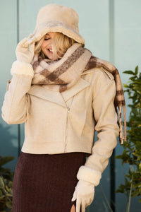 Effortlessly cool, this faux wool moto jacket is such a vibe! Layer over a crop top and skirt.