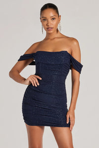 Glimmer Babe Glitter Off-The-Shoulder Mini Dress