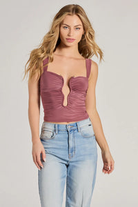 A chic tank top with sultry details like a plunge wired design and a ruched form-hugging fit that flaunts your figure. Complete the look with jeans.