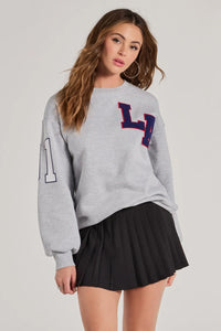 Sporty casual will be your vibe in fleece pull-over sweatshirt featuring a crew neckline, long sleeves, an "LA" front graphic, and trendy baseball graphics down the sleeves. With a mid-length hem and relaxed fit, style it up with a skater skirt!