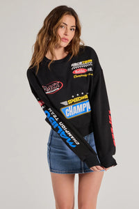 Trendy Moto Graphic Fleece Pullover Sweatshirt
