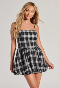 Playful, flirty, and just a little bit extra—this dress was made for fun plans. The ruched bodice and skater mini silhouette keep it comfy while still giving total it-girl vibes.