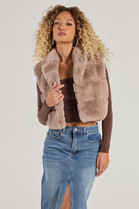 Become an icon layering on this faux fur cropped jacket this chilly season! Pair with a bodysuit and denim jeans.