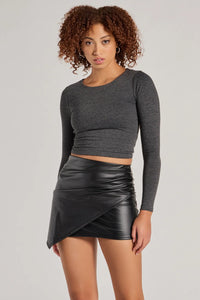 Raise the Bar Faux Leather Wrap Mini Skirt