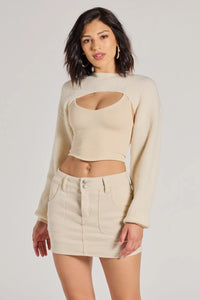 Keep cozy and look like a babe in this sweater knit topper crafted on soft fabric with long sleeves and an ultra-cropped hem. Complete the look with a crop top.