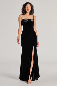 Gracie Velvet and Bow High Slit Mermaid Dress