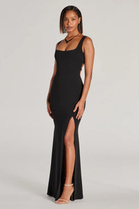 Everley Lace-Up Slit Mermaid Crepe Formal Dress