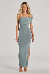 Undeniable Beauty One-Shoulder High Slit Knit Maxi Dress