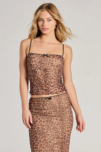 Forever fierce and fabulous! This crop top showcases a wild leopard print on a sleeveless silhouette with a fitted hem. Pair with the matching skirt to complete the look.