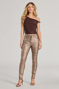 Serve major trendy style in these coated faux leather skinny pants designed with a snake print with a chic sheen. They feature a high-rise waist, a classic five-pocket and belt loop design, and a flaunting form-hugging fit. Pair with a crop top and heels!