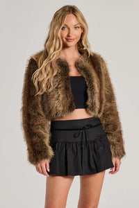 Add that chic factor to your everyday look with this adorable mini skort featuring a high-rise fit, a thin velvet bow trim accent, a drop waist design, and a short ruffled overlay with fitted shorts for coverage. Dress it up with a faux fur jacket and ankle booties!