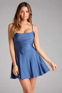 POV: You just walked in, and every head turned. This adorable skater dress brings the drama from the back with a statement bow and serves flirty vibes with a sleek fit and flared silhouette.