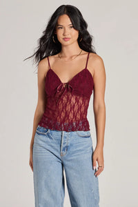 Everyone will notice how sultry you look in this lace crop top perfect for adding romance into your style! Adorned with delicate spaghetti straps, a playful V-neckline with a ribbon tie, and a sheer fitted crop hem. Complete the look in high-rise jeans for a casual date night.