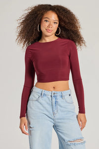 Everyone will stop and stare at you in this crop top featuring a flirtatious open back and a cropped hem on buttery smooth fabric. Complete the look in high-waisted jeans.