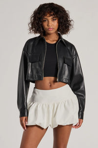 This sleek faux leather shacket is designed with a collared neckline, long sleeves, a complete zip-front, and two large front pockets for a trendy touch. The cropped hem paired with the relaxed fit makes it the perfect fall layering piece!