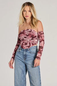 Floral Fantasy Long Sleeve Mesh Bustier Floral Fantasy Long Sleeve Mesh BustierUnlock a floral fantasy to your vibe with this long sleeve mesh bustier showcasing a sultry off-the-shoulder neckline adorned with long fitted sleeves and a cropped hem that flaunts your figure. Pair with jeans. Fit & Features - Floral printed-sheer mesh fabric with partial knit lining, plenty of stretch