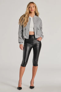 So Sleek Coated Faux Leather Capri Pants So Sleek Coated Faux Leather Capri PantsUnlock a sleek look in these faux leather high-rise capri pants in a chic fitted silhouette perfect for capturing those 90s vibes. Pair with a jacket. Fit & Features - Coated faux leather fabrication