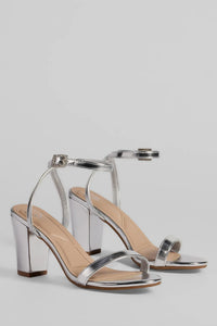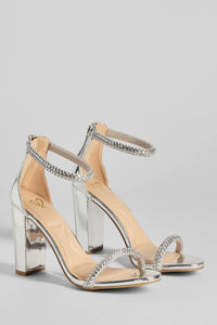 - Thin toe strap and ankle strap, rhinestone embellishments