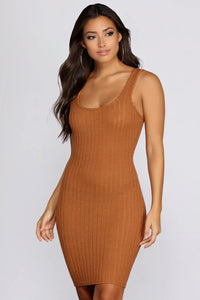 Girl flaunt it out in this sexy mini! It features a sleeveless bodice, a scoop neckline, tank-like straps and a curve hugging mini length silhouette. Dress is composed of ribbed knit fabric that offers a moderate stretch. Pair with matching duster to create a Fall-inspired look!