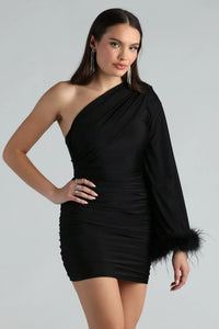 Brielle One-Shoulder Marabou Feather Trim Mini Dress