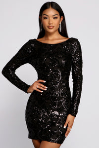 Sadie Formal Long Sleeve Sequin Mini Dress