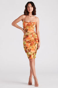 You'll always look and feel perfect in this sleeveless midi dress for parties or going out! Crafted from an abstract print mesh fabric, this dress boasts a crew neckline, a flattering bodycon silhouette, and a midi-length hem. Complete the look in stiletto heels and a purse!