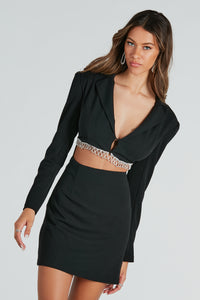 Perfection And Beauty Rhinestone Mock Neck Mini Dress