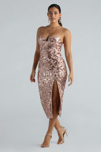 Meilani Formal Sequin Scroll Slit Midi Dress