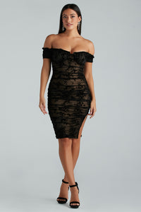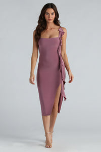 Dare To Be Noticed Ruffle Slit Midi Dress