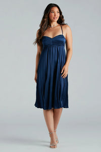 Hailee Formal Satin Pleated A-Line Midi Dress