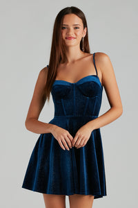 Kandice Velvet Rhinestone Mini Party Dress