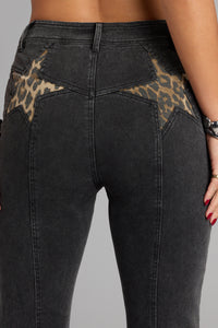These flare denim jeans feature leopard star patches on the back for that unexpected pop of sass, perfect for lunch meetups, concert nights, or just showing off your wild streak.